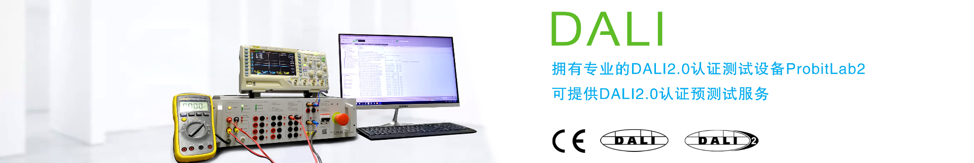 擁有專(zhuān)用的DALI實(shí)驗(yàn)室,從DALI協(xié)會(huì)購(gòu)買(mǎi)了用于DALI認(rèn)證測(cè)試的ProbitLab2設(shè)備,可以幫客戶(hù)做DALI認(rèn)證測(cè)試,客戶(hù)申請(qǐng)DALI會(huì)員后,可提交測(cè)試結(jié)果到DALI官網(wǎng)進(jìn)行認(rèn)定。